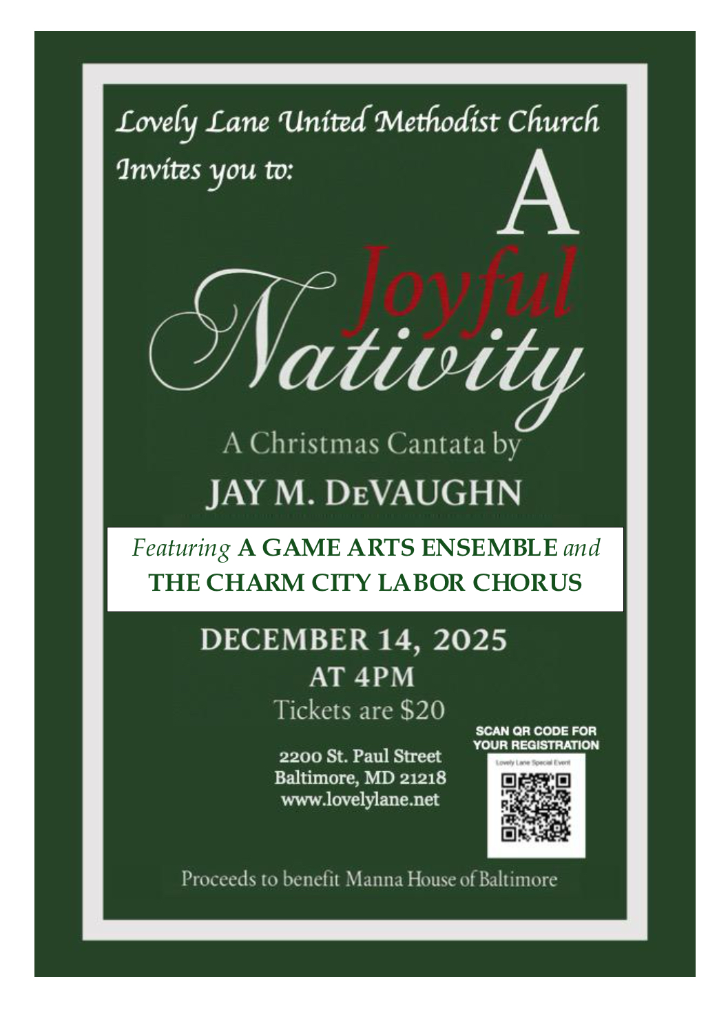 Join us at Lovely Lane United Methodist Church on Sunday December 14, at 4 pm for A Joyful Nativity; A Christmas Cantata.