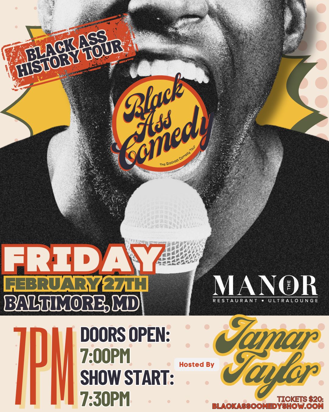 Black Ass Comedy is bringing its Winter Tour to Baltimore for a high-energy night of stand-up at The Manor. Known for blending traditional stand-up with interactive crowd moments, the show has produced 30+ events across 8 cities since 2024 and continues to platform emerging Black comedic talent across the East Coast. This Baltimore stop will feature host Comedian Mar alongside a lineup of regional and national comics, crowd-driven games, giveaways, and a lively atmosphere that feels part comedy show, part community celebration.