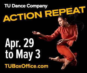 Action Repeat will be an exploration of perpetual motion. Featured choreographers include TU faculty members Vincent Thomas, Caroline Rocher Barnes, Sarah Olson and Robert Kleinendorst and guest artists Thryn Saxon and Hubbard Street Dance. The program also