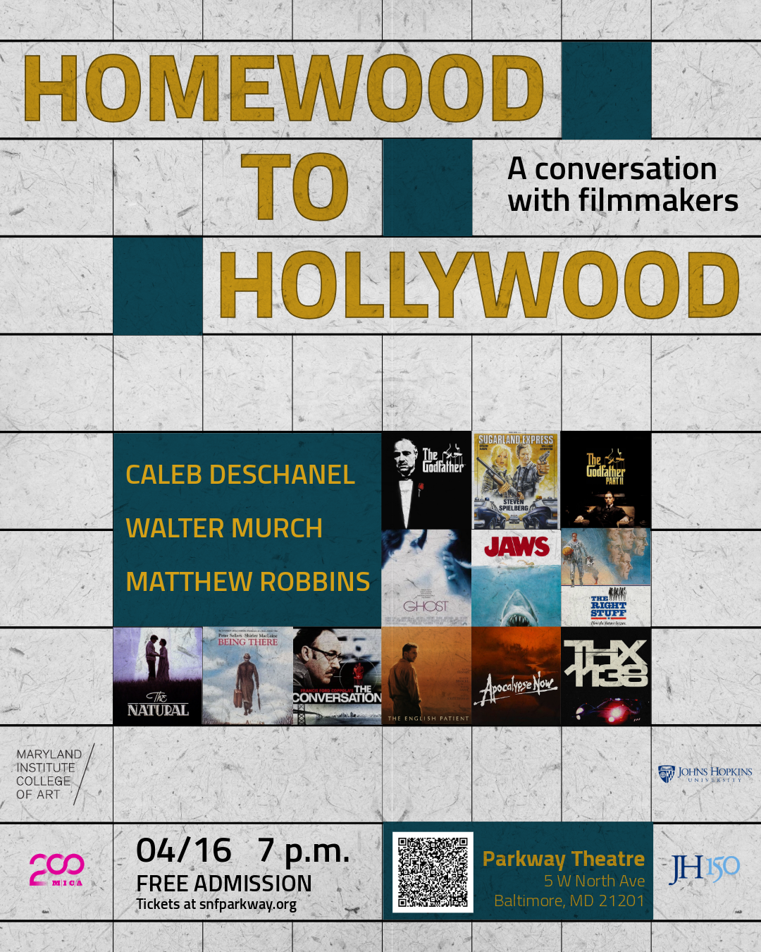 A free conversation between three Hollywood greats who are also Johns Hopkins alumni. In celebration of Johns Hopkins' Sesquicentennial and MICA’s Bicentennial we will be hosting three distinguished Hopkins alumni at the Parkway Theatre on Thursday, April 16 at 7:00PM.