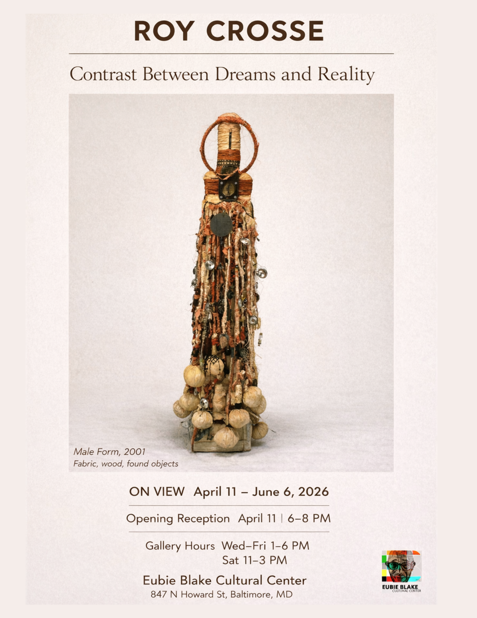 The Eubie Blake Cultural Center (EBCC) will present ROY CROSSE: Contrast Between Dreams and Reality, a major exhibition reexamining the work and legacy of Roy Crosse, a multidisciplinary artist whose practice engaged African diasporic symbolism, cultural memory, and the spiritual dimensions of Black identity.