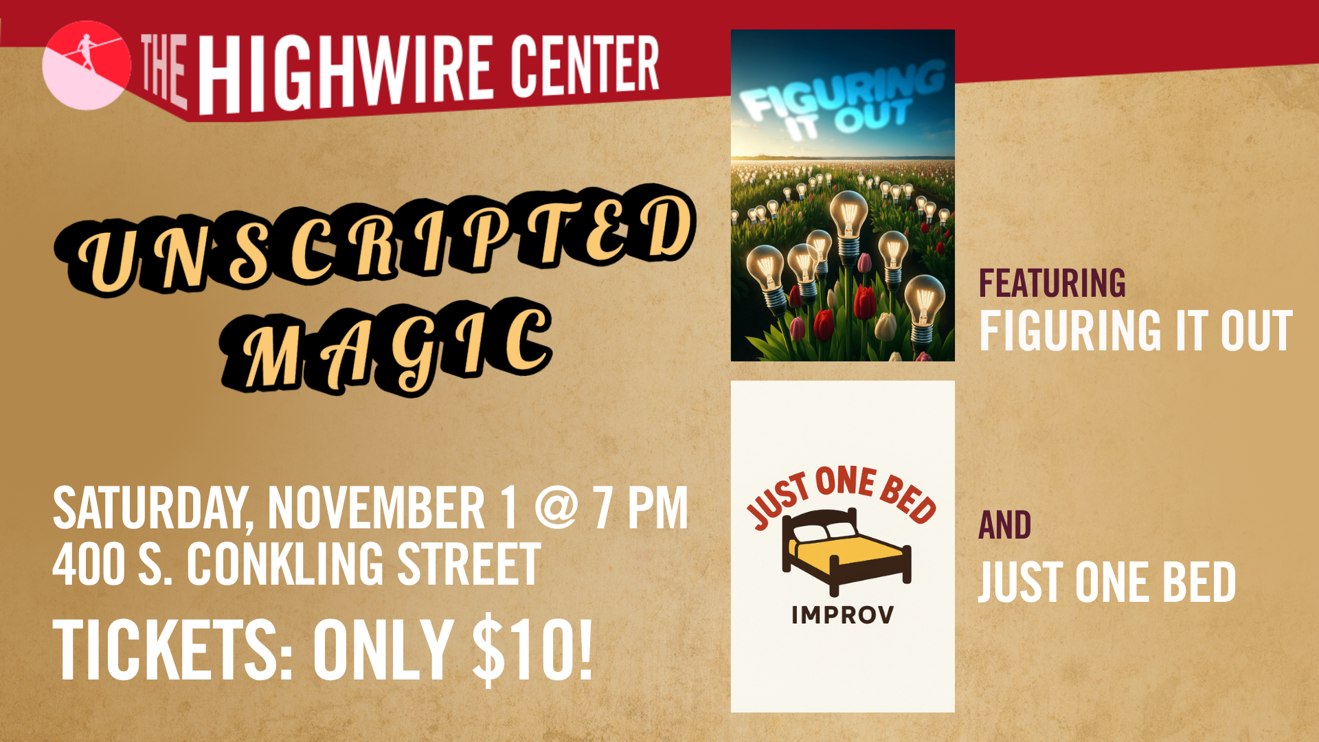 Start your weekend with improv that surprises every time at The Highwire Center. Here’s our lineup: