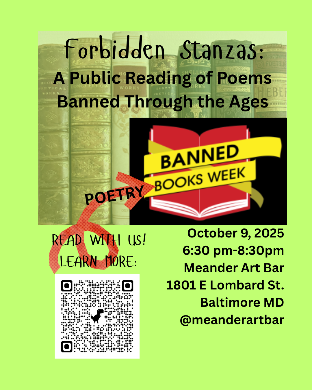 In honor of Banned Books Week (October 5-11), the DC-Maryland Chapter of Writers for Democratic Action is hosting a free public reading of poems from all eras and cultures that were been banned because someone was offended.